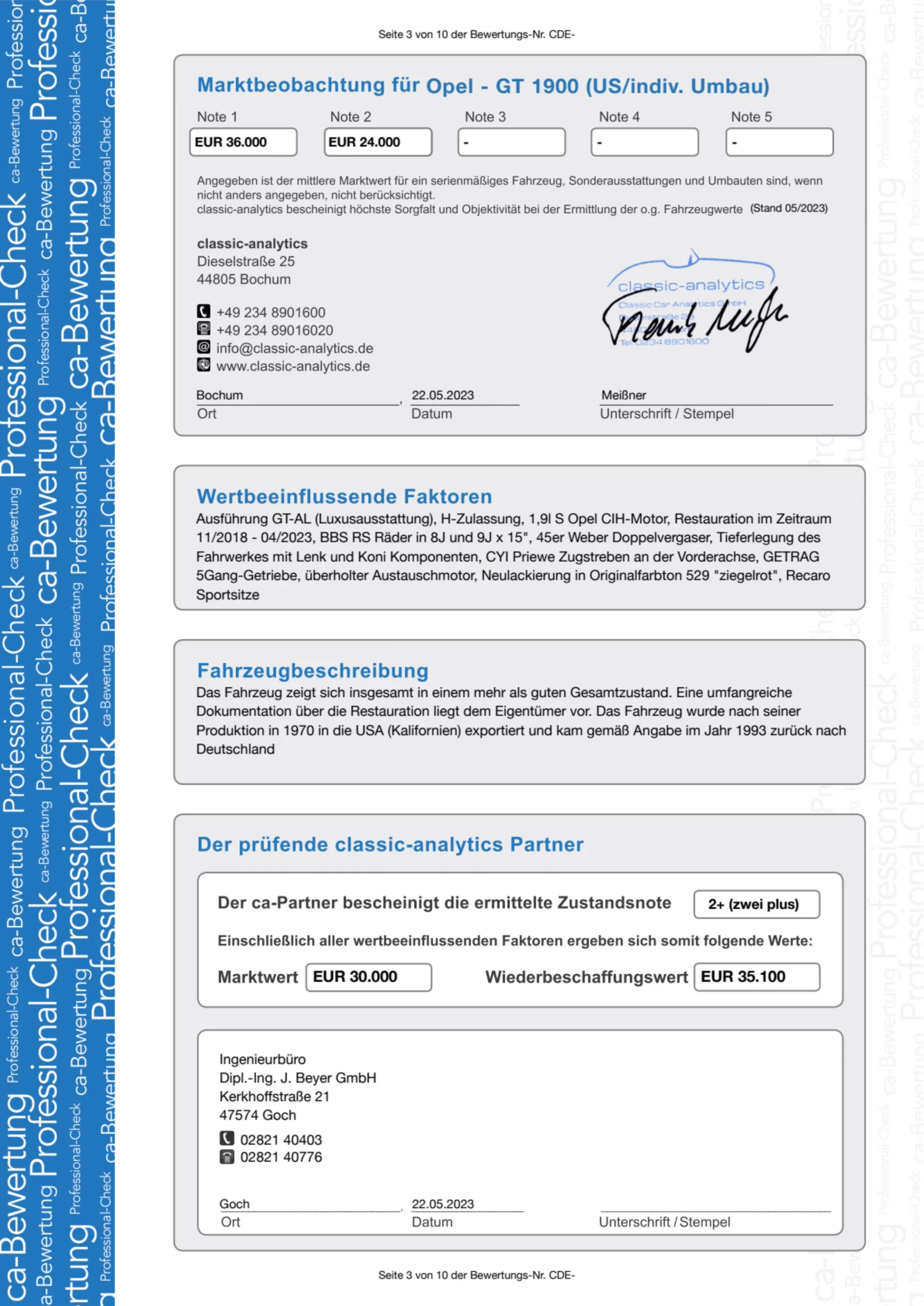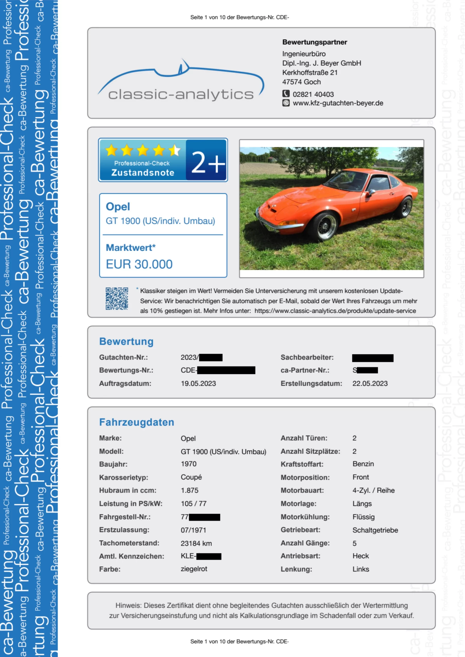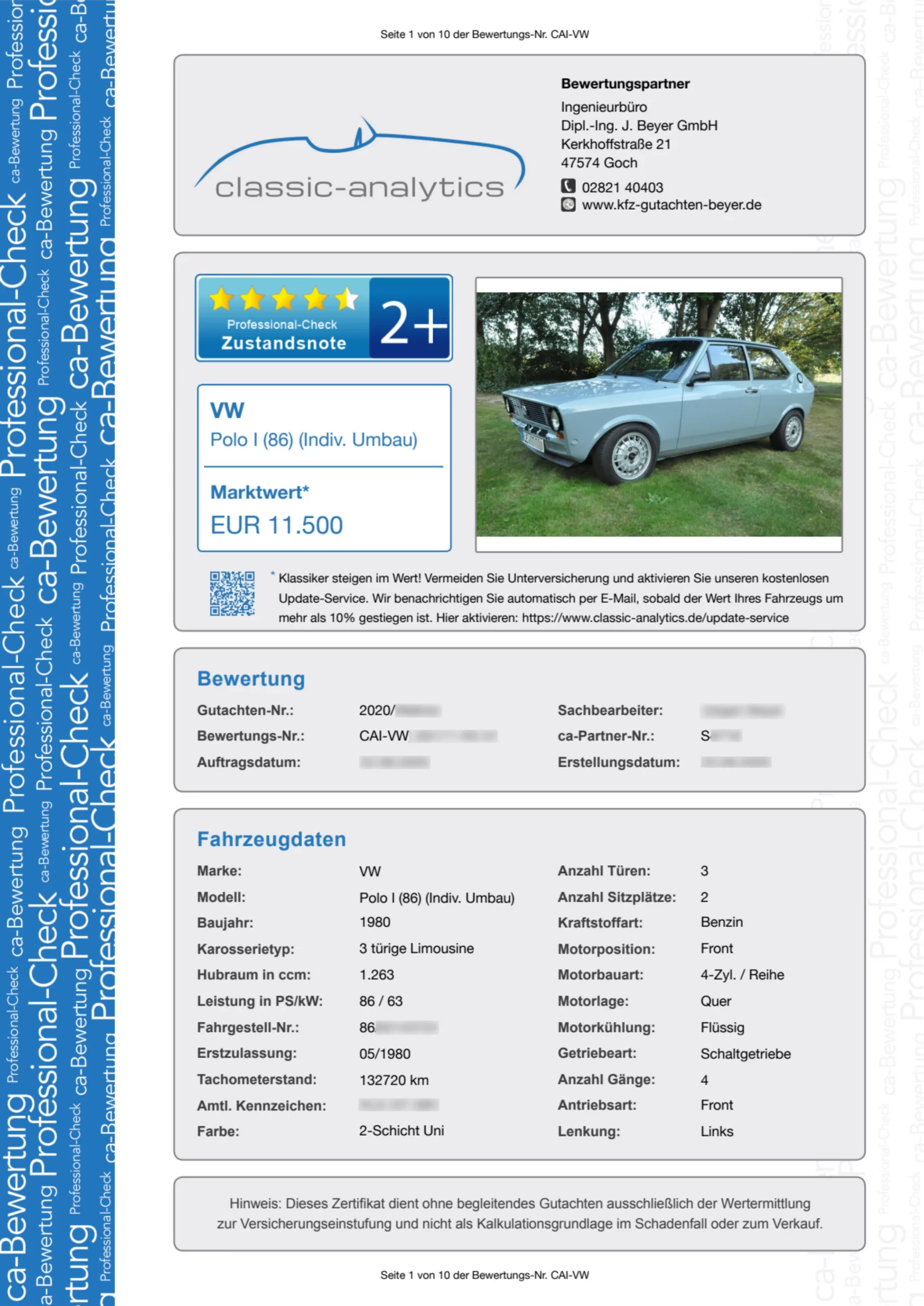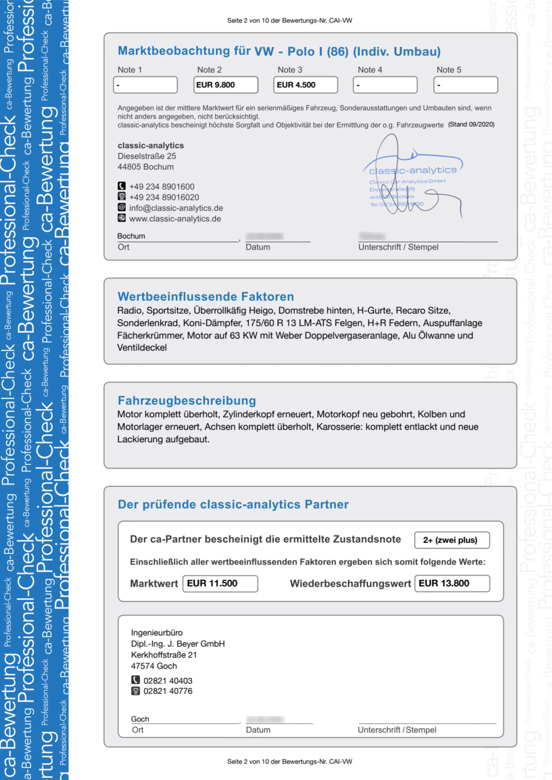 Weiteres Beispiel eines Oldtimer Bewertung.